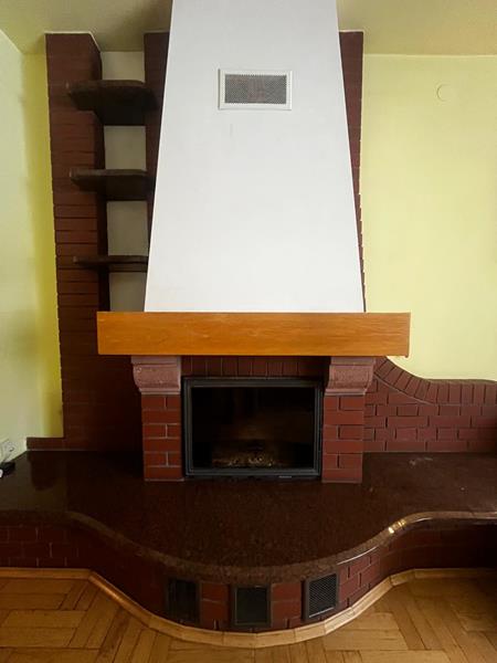 Dom ogrzewany jest przez pompę ciepła (zainstalowano fotowoltaikę – 5 kW), oraz przez kominek.
