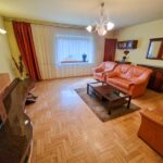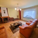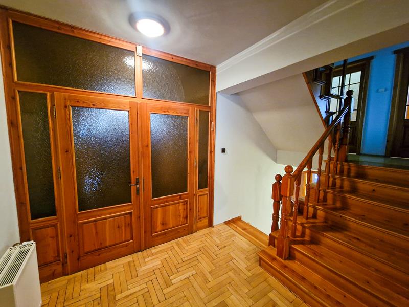 Parter oraz półpiętro – mamy tu przestronny salon z kominkiem, kuchnię, łazienkę, pokój telewizyjny, pokój biurowy oraz przedpokój.