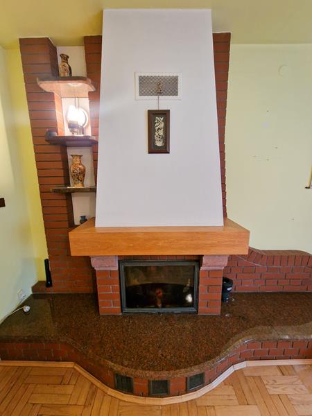 Dom ogrzewany jest przez pompę ciepła (zainstalowano fotowoltaikę – 5 kW), oraz przez kominek.