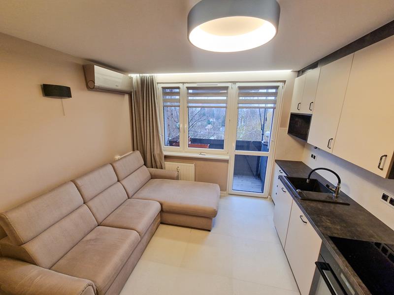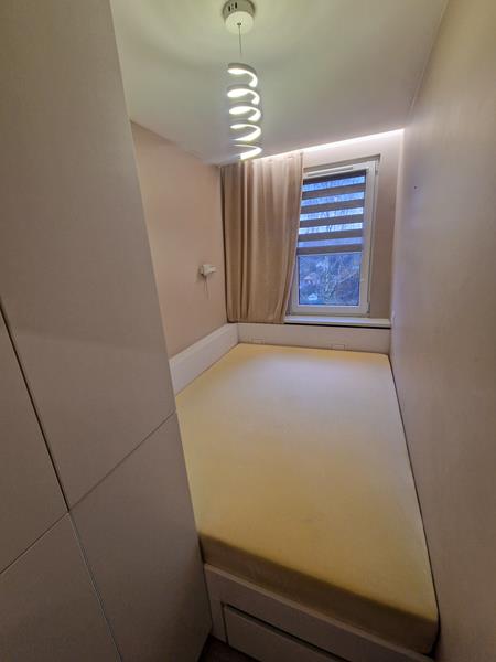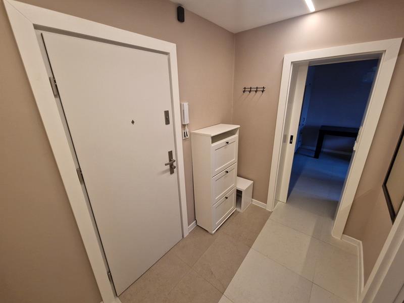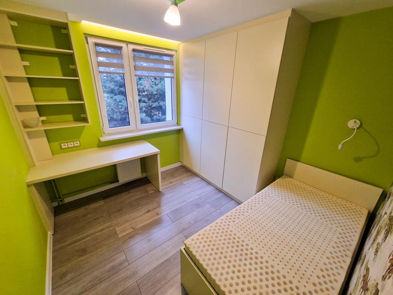 Mieszkanie pięć lat temu przeszło generalny remont. Sufity zostały obniżone, instalacja elektryczna oraz wodno-kanalizacyjna została wymieniona. Na podłogach w mieszkaniu ułożono panele podłogowe (laminowane). Natomiast w łazience, przedpokoju oraz na balkonie ułozono płytki. W salonie sprytnie wkomponowano kuchnię zyskując w ten sposób dodatkową sypialnię. W salonie oraz w łazience na podłodze zamontowano ogrzewanie podłogowe. Okna mamy tu plastikowe. Ogrzewanie jest tu miejskie. A od strony podwórka dostępny jest parking dla mieszkańców.